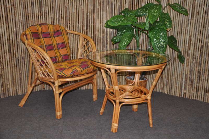 Ratanová sedací souprava je vyrobena z přírodního ratanu s barvou konstrukce odpovádající fotografii výrobku,obsahuje 1 křeslo a stolek se sklem, polstry jsou vyrobeny v ČESKÉ REPUBLICE.