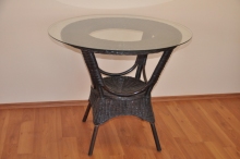 Stolek vyrobený z přírodního ratanu se skleněnou deskou. Sklo je posazeno na plastové přísavky vsazené do ratanové konstrukce stolku a tím je ke stolku fixováno