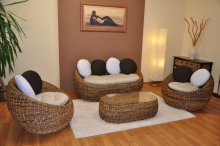 V této kategorii naleznete luxusní sedací soupravy z ratanu a jiných exotických materiálů, jeko je například list banánovníku, ratan kubu či vodní hyacint